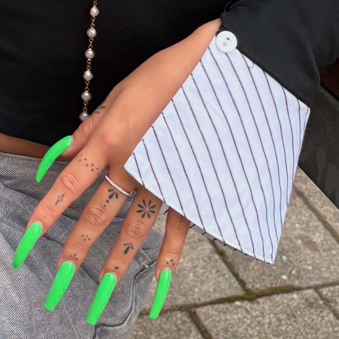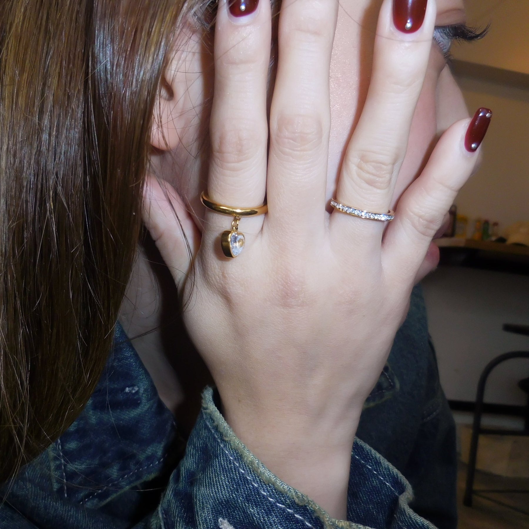 他のリングより小さめのサイズになっているため、薬指や中指につけて、人差し指の大きめのリングと合わせても可愛い♡