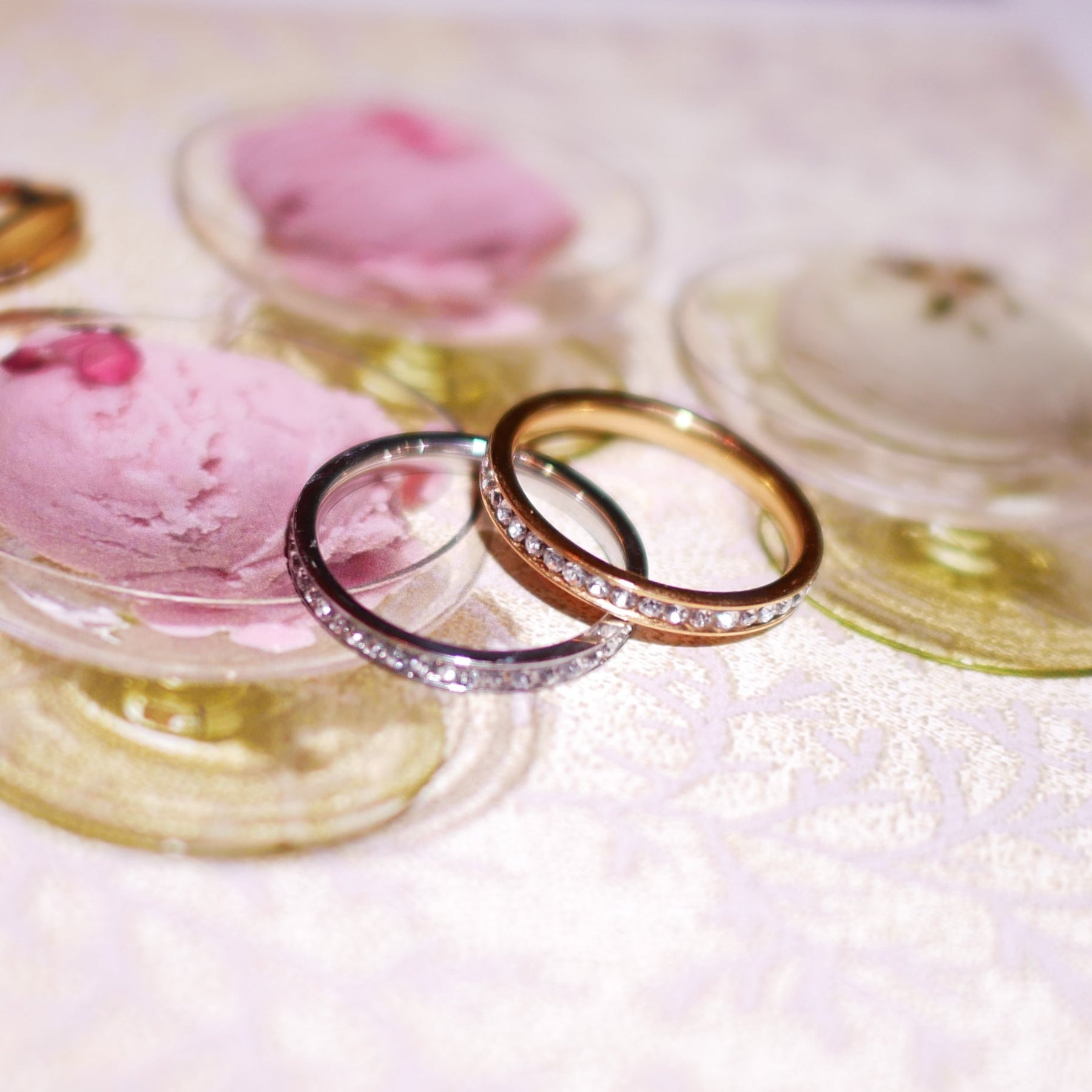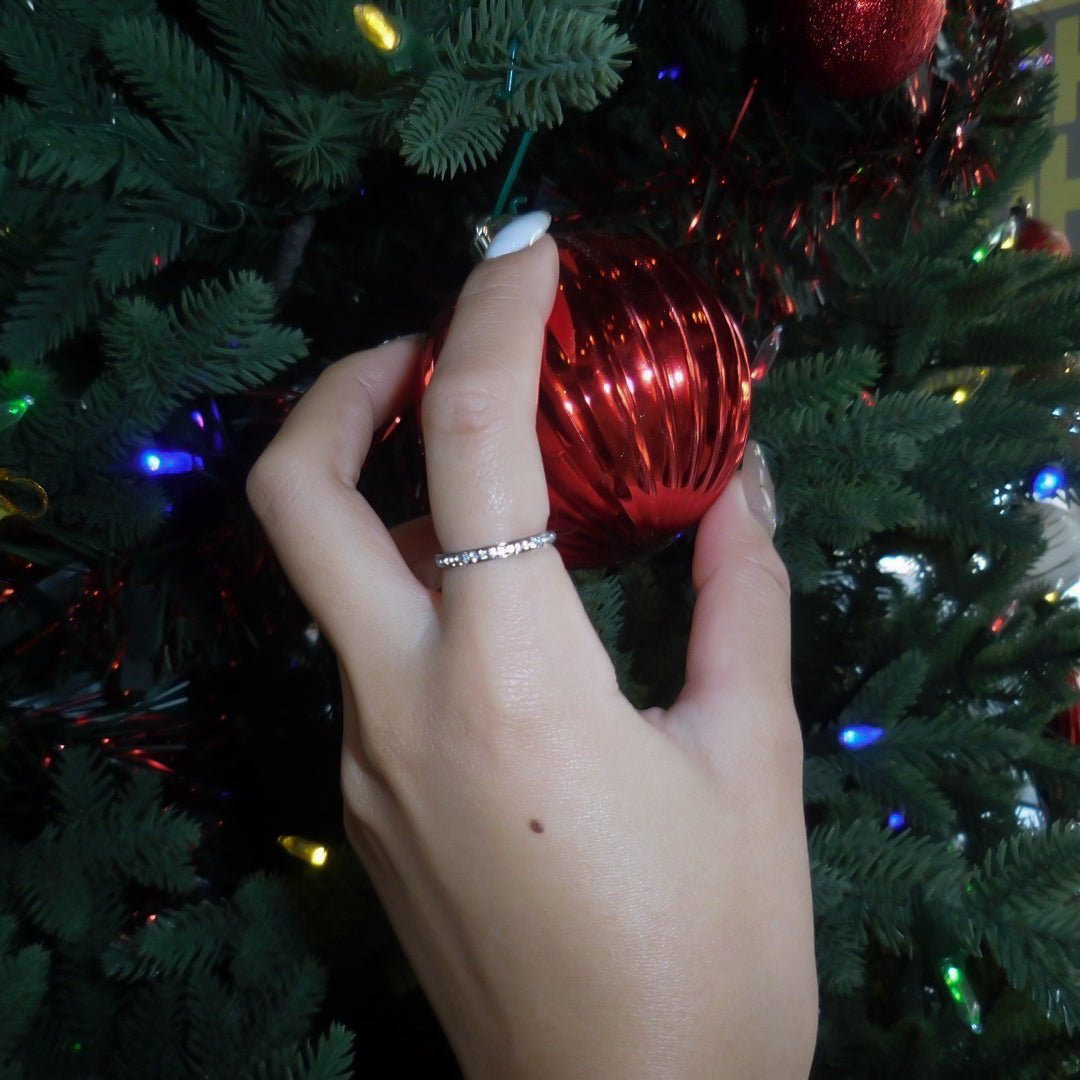 ステンレス製で機能性抜群。ジルコニアが並べられたシンプルなリング✨