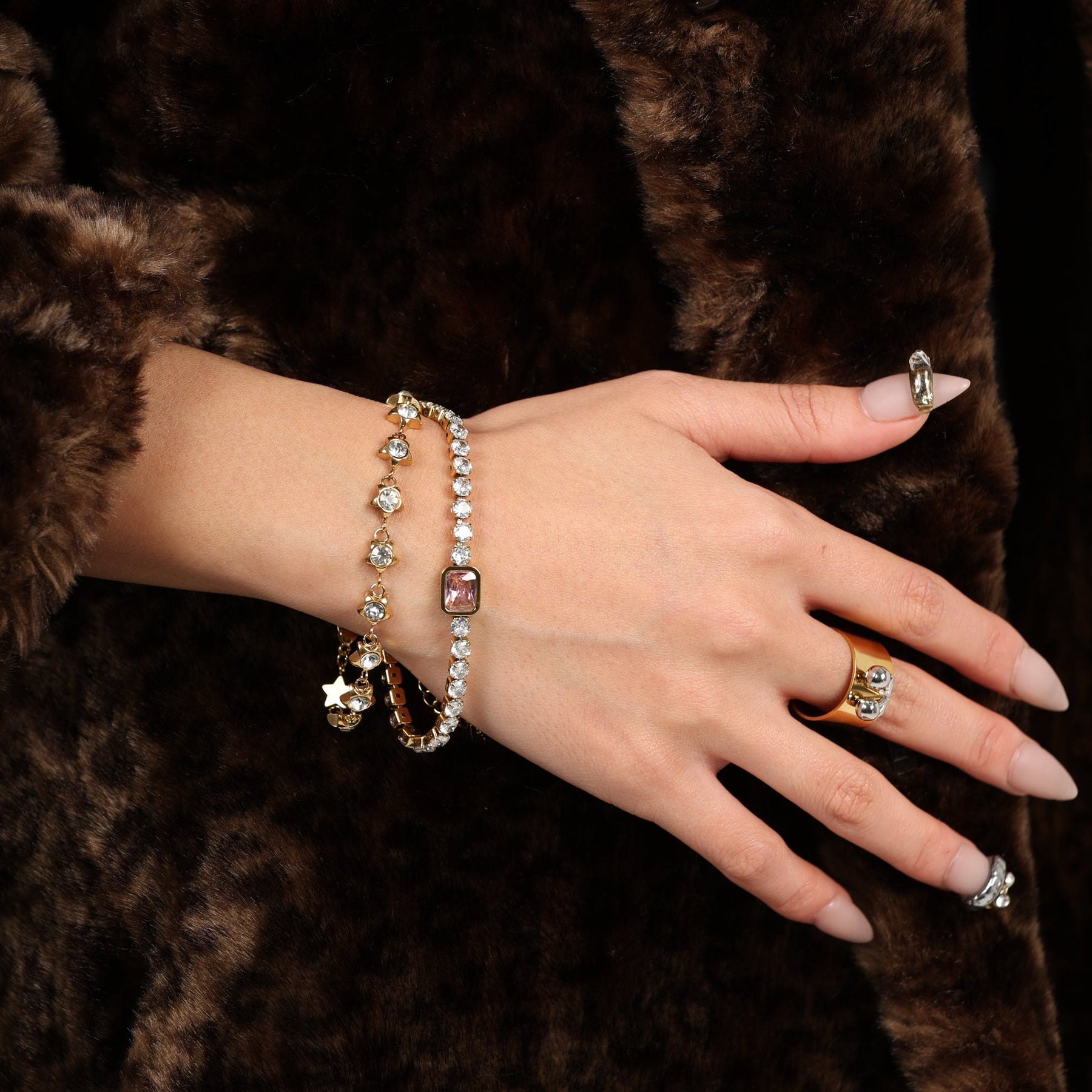 星モチーフ×クリアストーンのゴールドブレスレット💫
