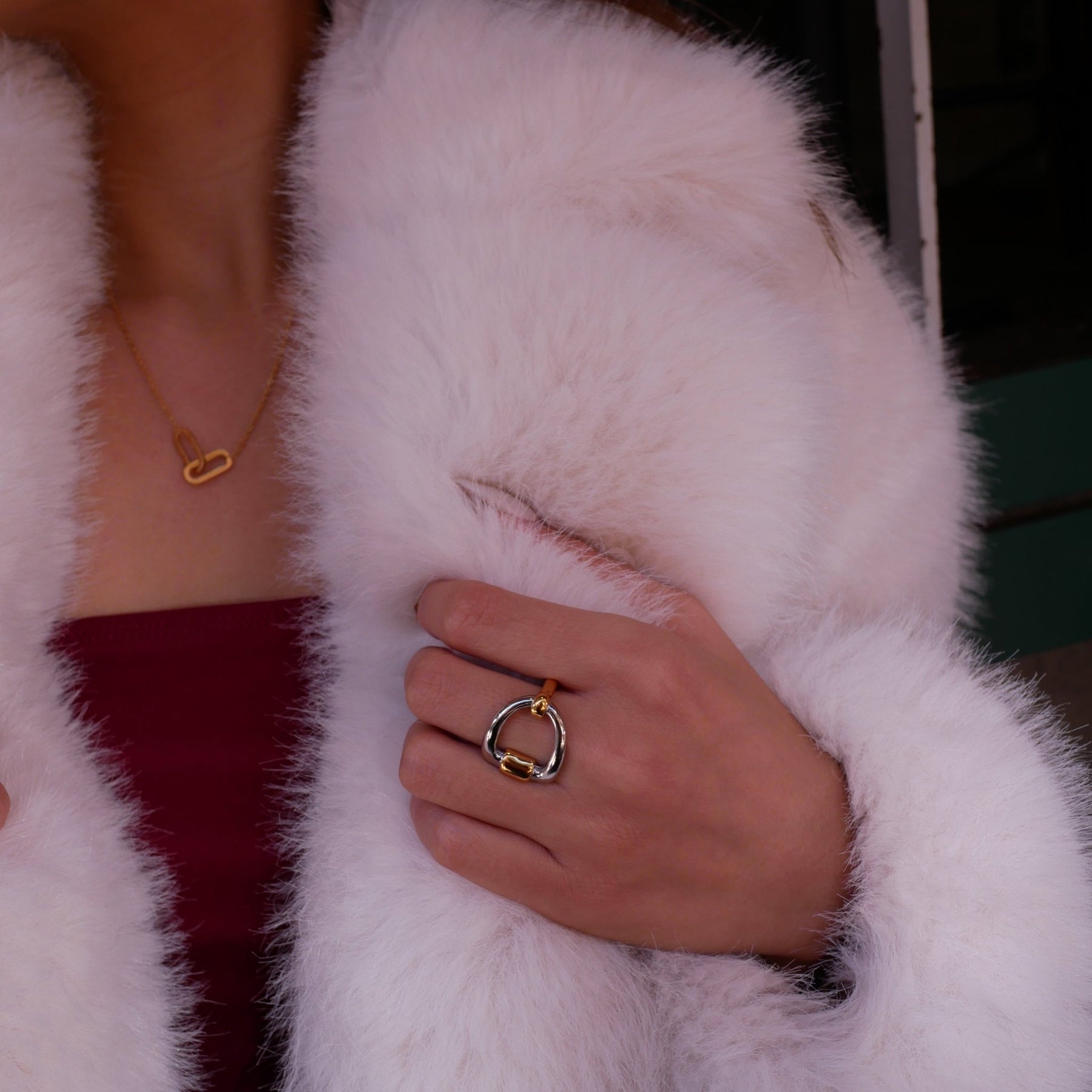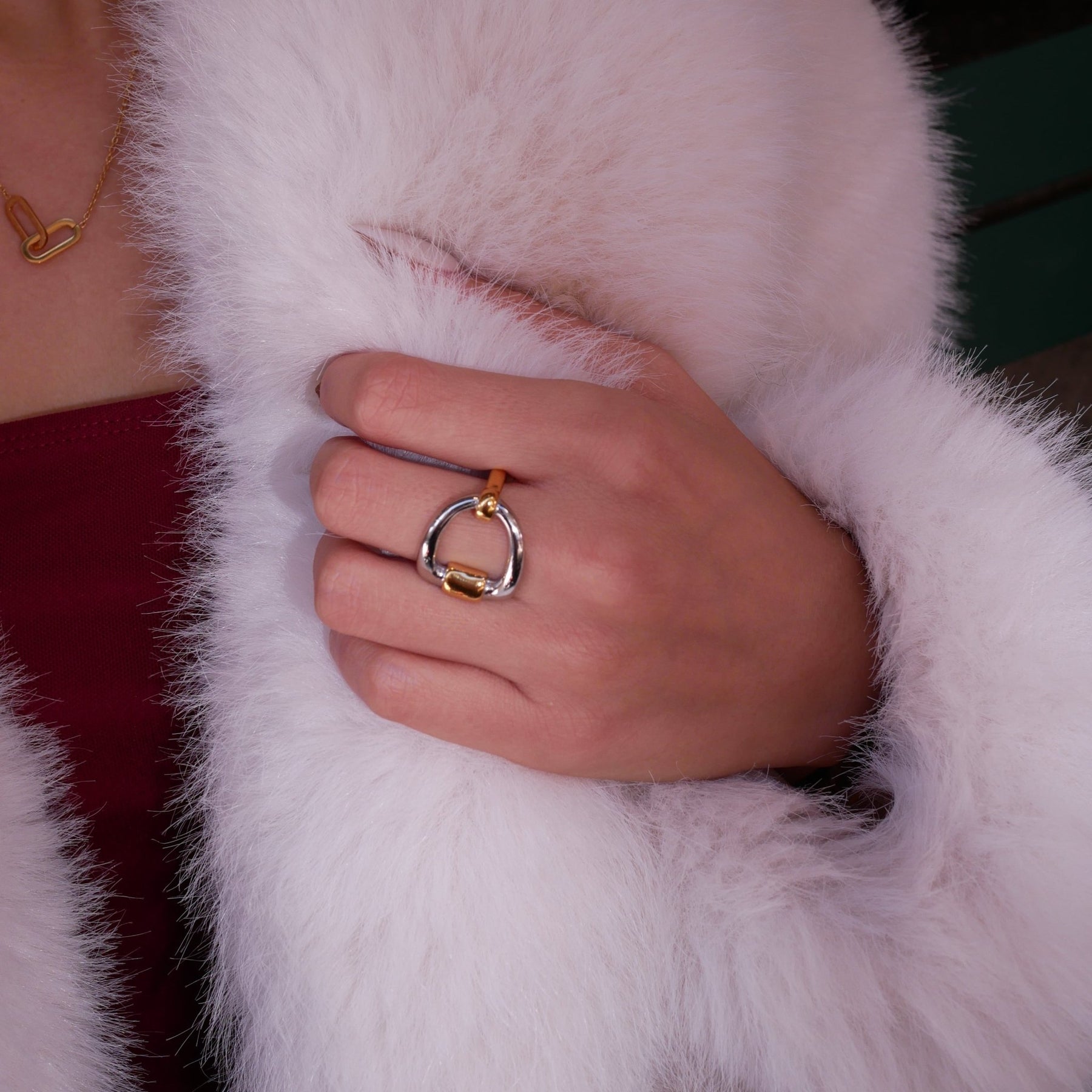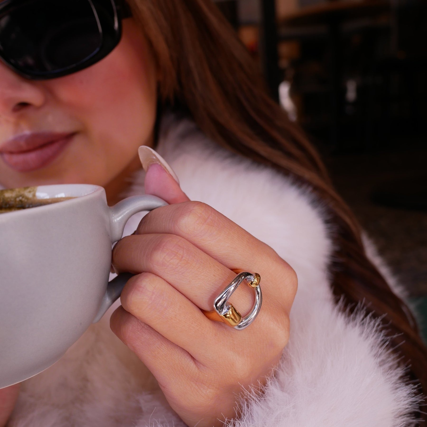 ゴールド×シルバーのツートーンが映える、モードなスクエアリング✨