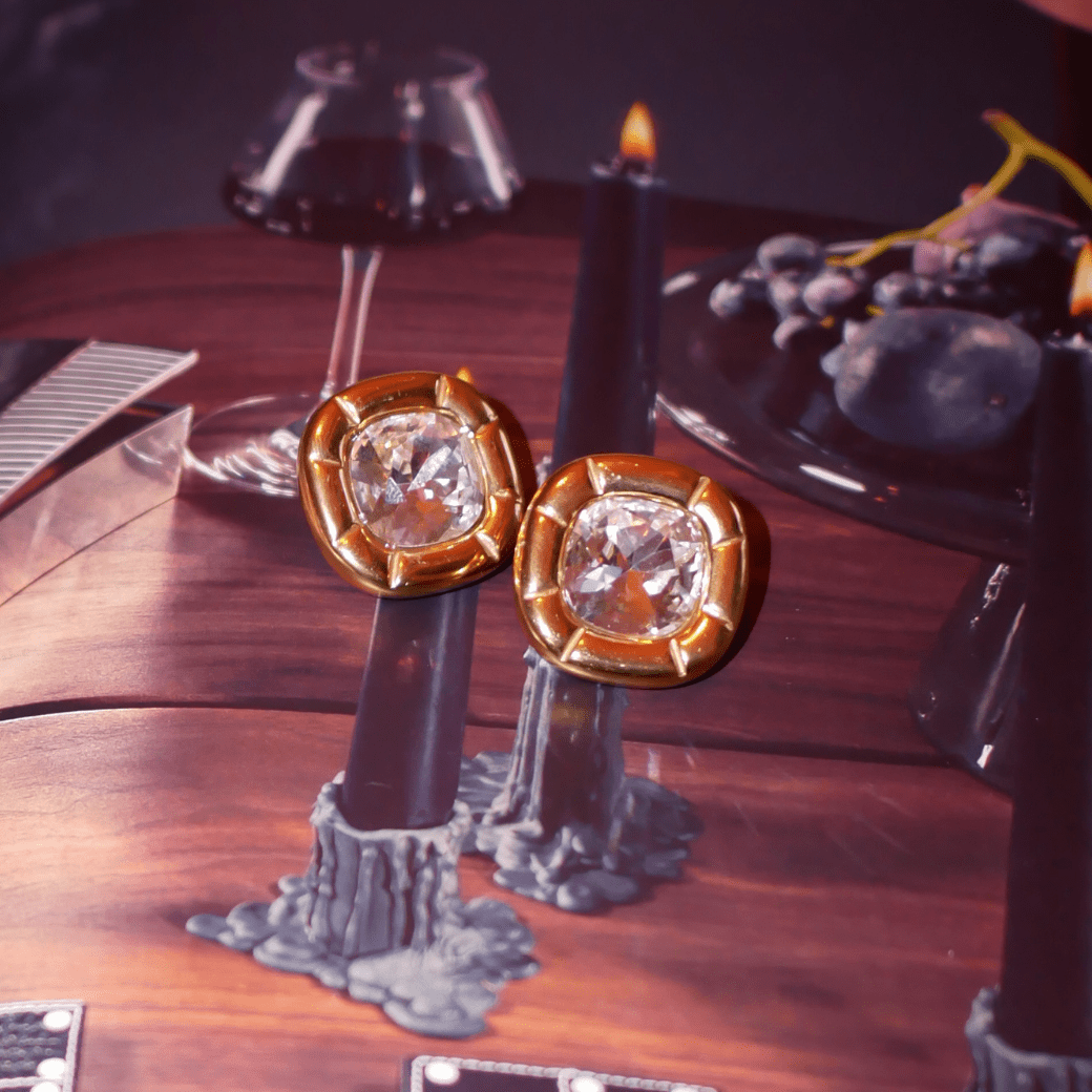 [DESIGN] These elegant earrings are adorned with large zirconia stones, creating a luxurious look. A new and beautiful piece has arrived! โจPerfect for formal wear. Adding a feminine touch to a cool outfit with these earrings is also recommended.