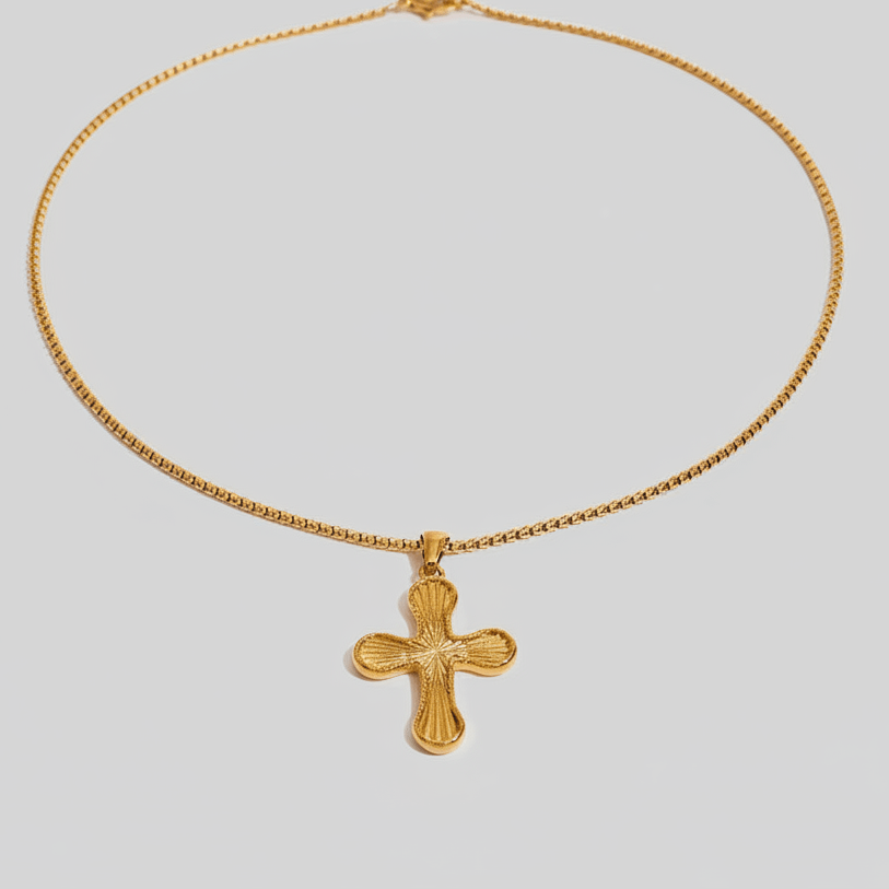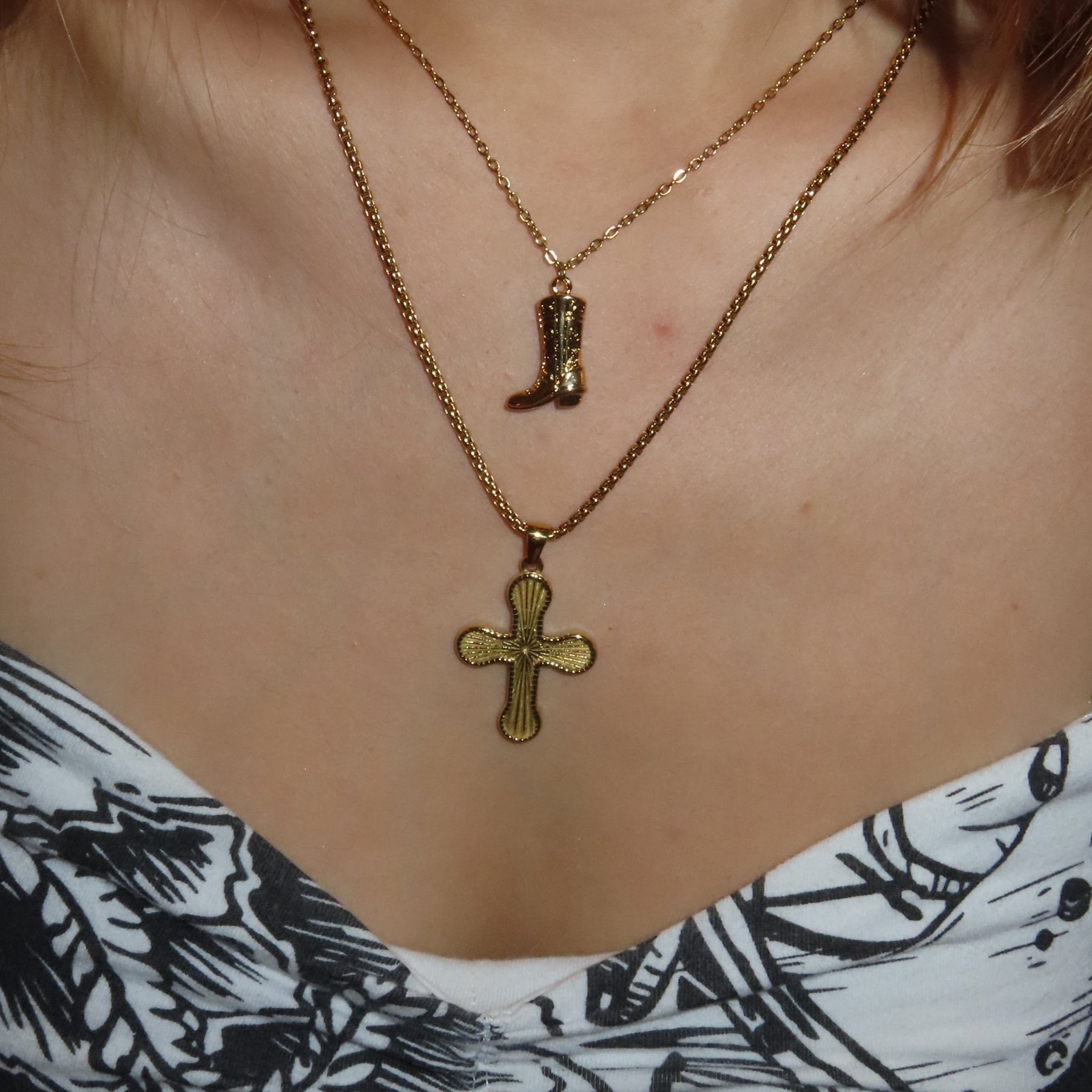 [DESIGN] This necklace features a simple yet classic cross motif on a long chain. The chain is delicate yet striking, making it a stylish piece to wear on its own. It's the perfect length and size for layering, making it easy to wear with everyday outfits or for formal occasions.