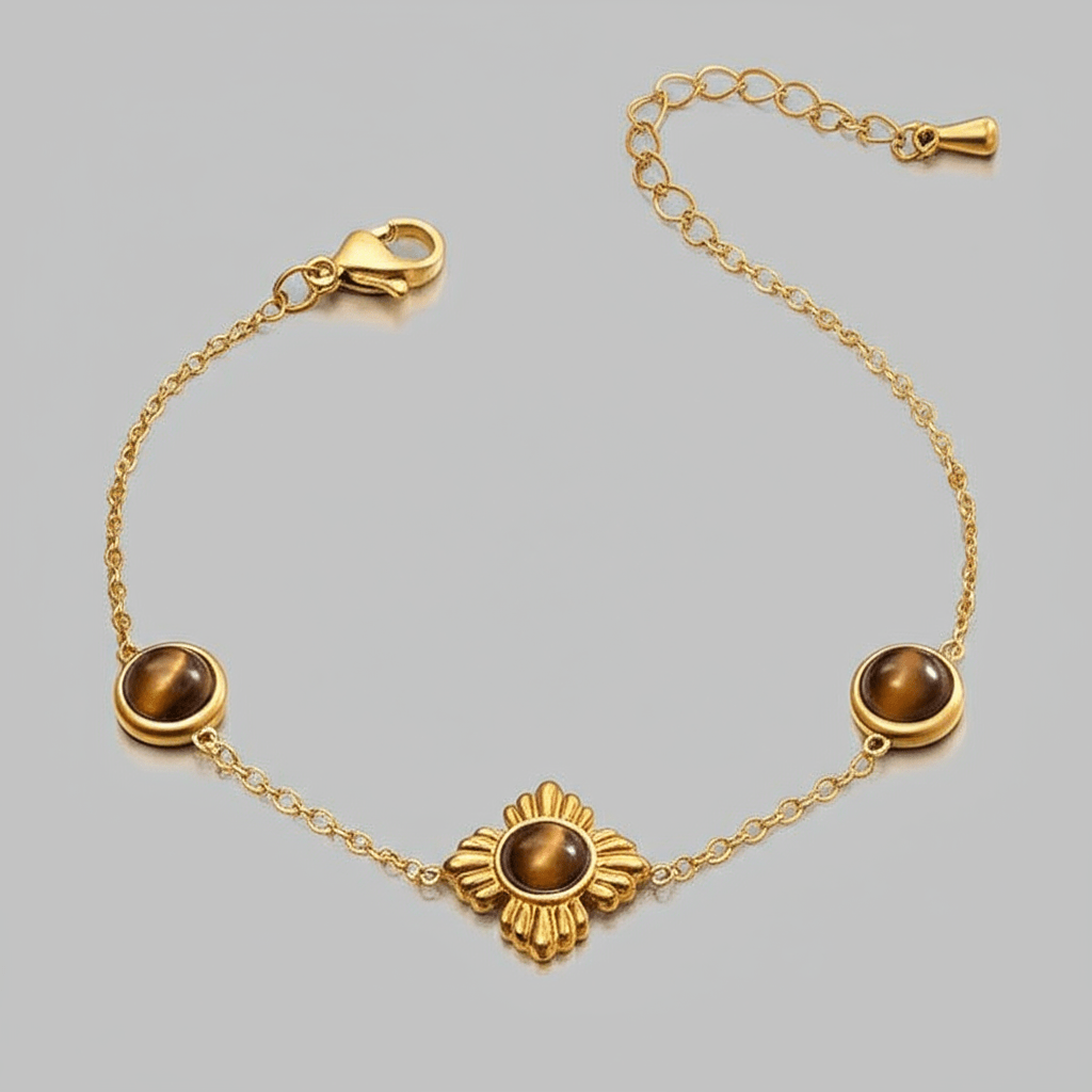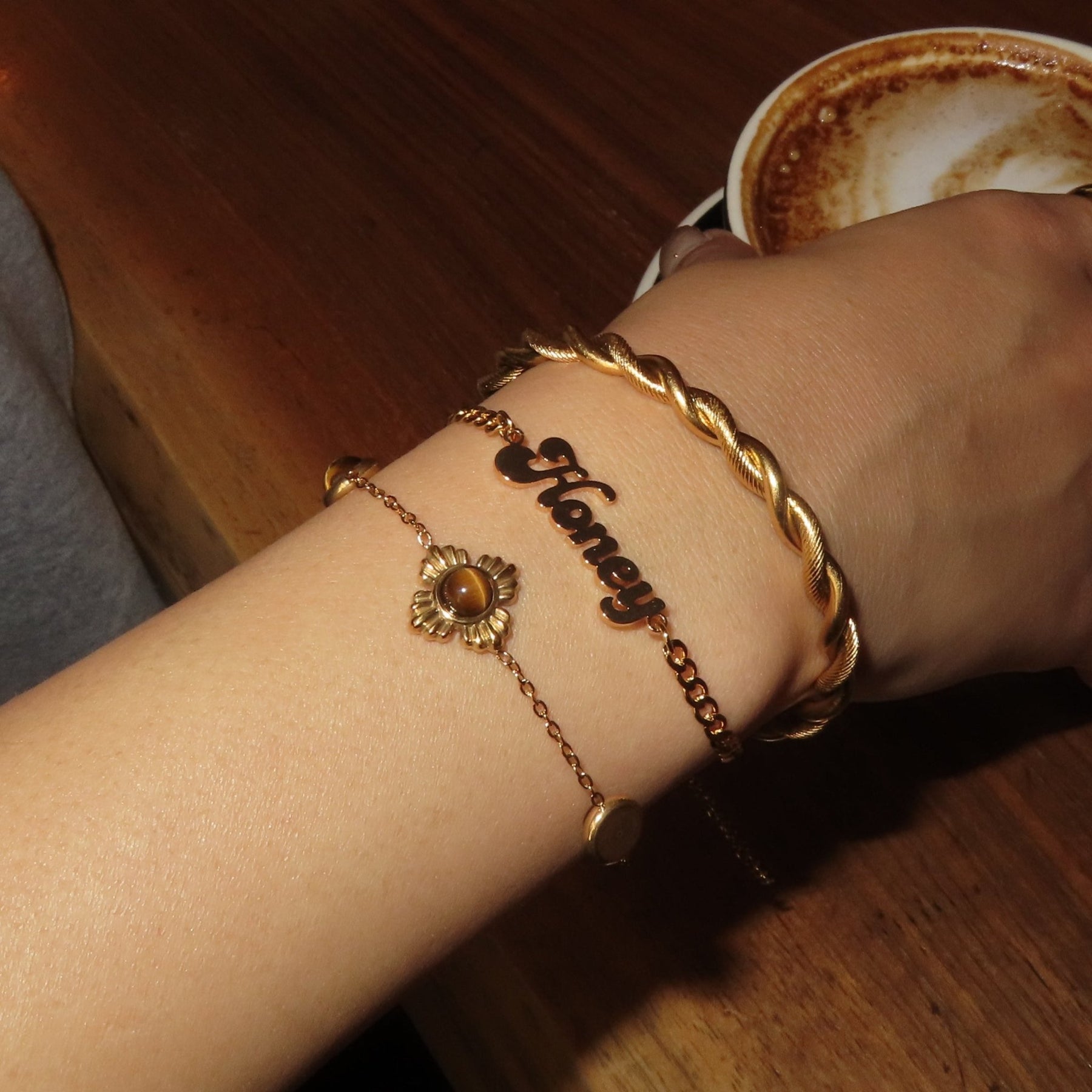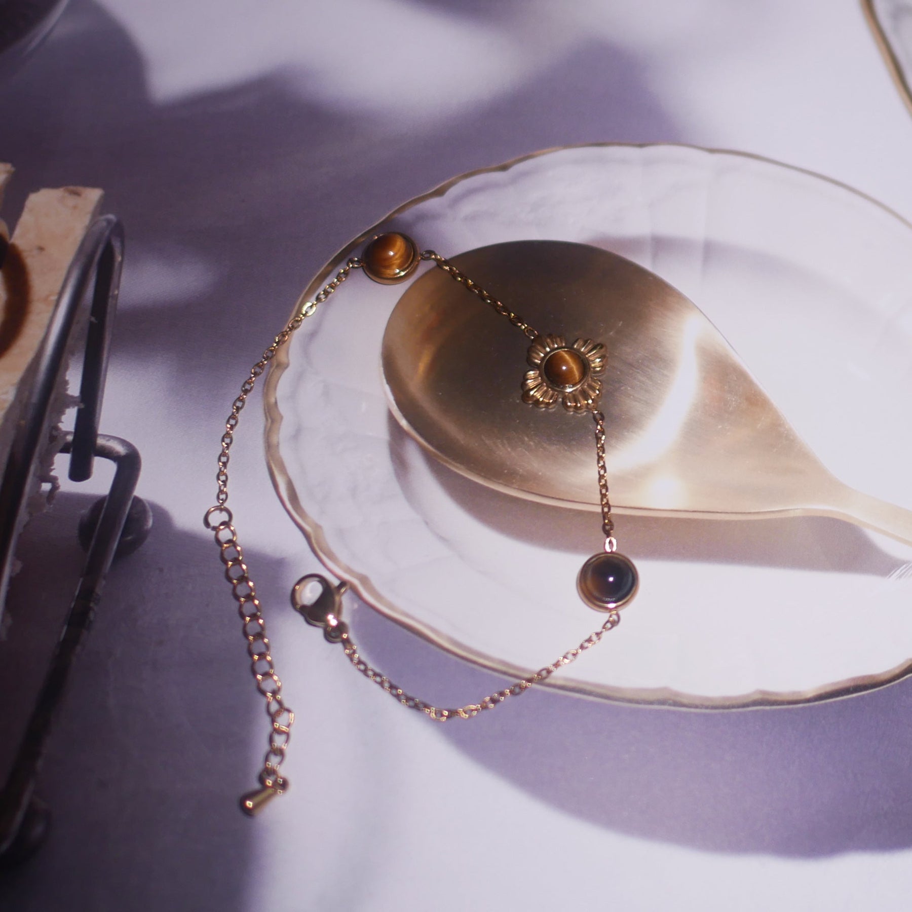 [DESIGN] It's also cute to match it with a tiger eye tiger ring! The gold and brown of the stone harmonize to create an elegant and calm atmosphere. Combine it with other gold items as shown in the picture to create a more trendy look.