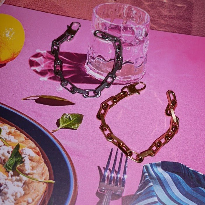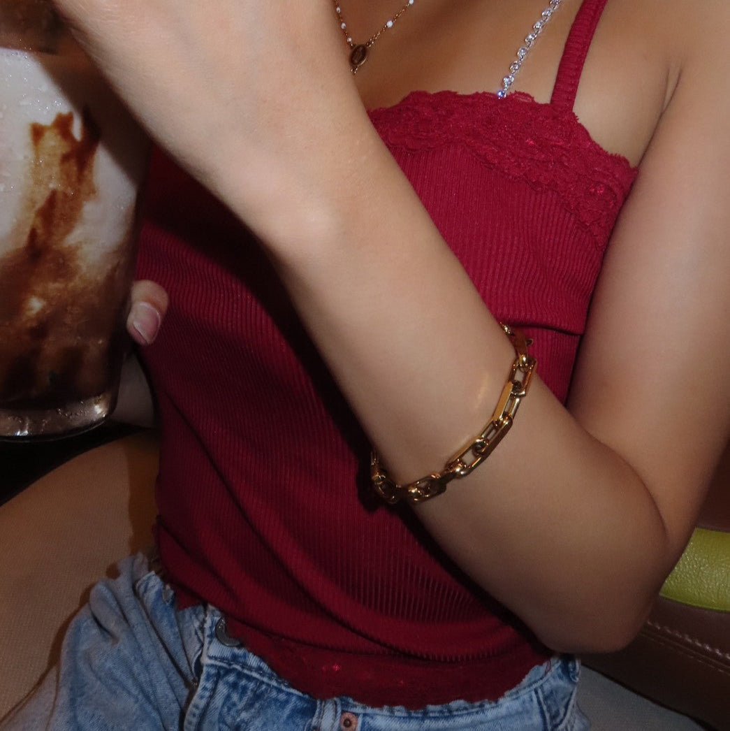 HoneyButterNine's chain bracelet will add an edge to your outfit.